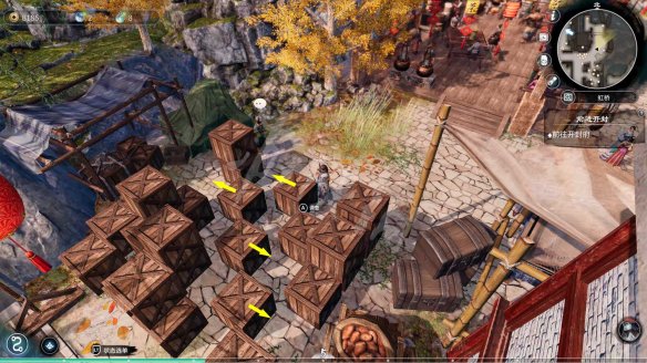 在码头边有一位苦恼的商人,他的货物被搬运工人乱摆,阻挡了去路,与他对话后可以进行推箱子的游戏。推出一条路以后他会给2000钱作为奖励。