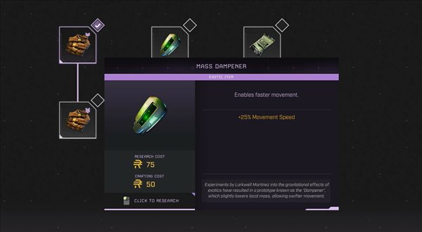 轨道科技还可能让您解锁新的能力(例如玩家定位组件可以让您在地图上看到好友的位置),也可能会解锁被动加成(例如可以装备到防护服上的质量阻尼组件)。