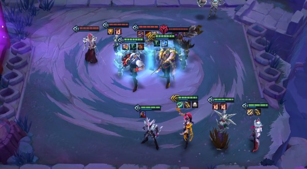 1.装备合成冰霜之心、基克的先驱、刺客纹章、无尽、静止法衣,电刀,冰霜之心给德莱厄斯、两个基克给丽桑卓,刺客纹章给婕拉,电刀和无尽给崔斯特,静止法衣给萨科