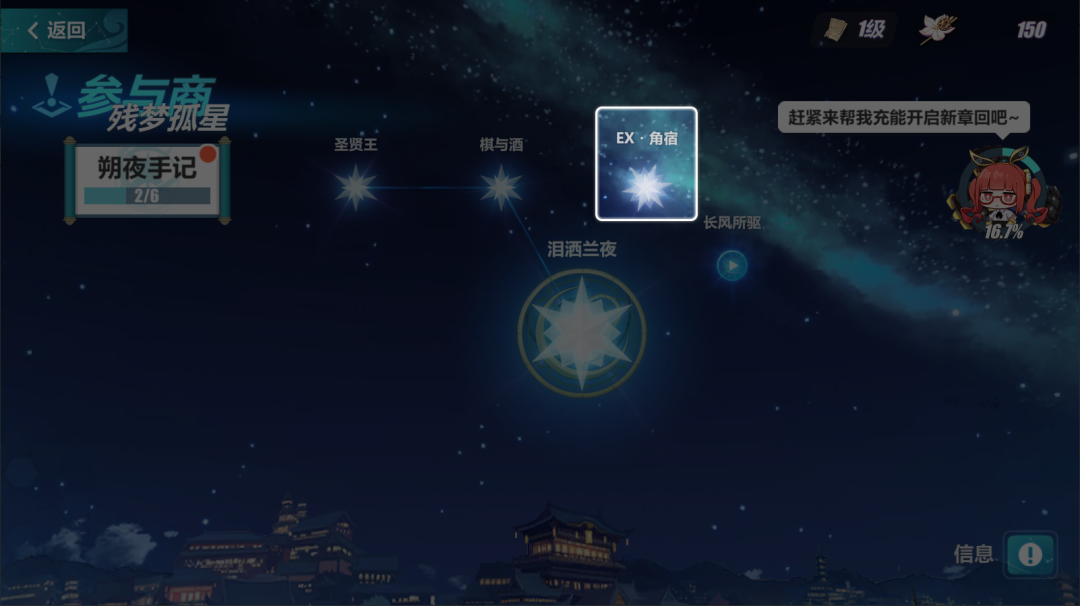 所以,相信看到这里的你已经明白了,我们需要刷每日充能关卡来提升活动等级,获取额外属性加成与效果加成,这样才能轻松通关EX关。比如在第一个EX关中的流血效果,将天宫残卷升至4级获取普攻回血的效果即可轻松应对啦。