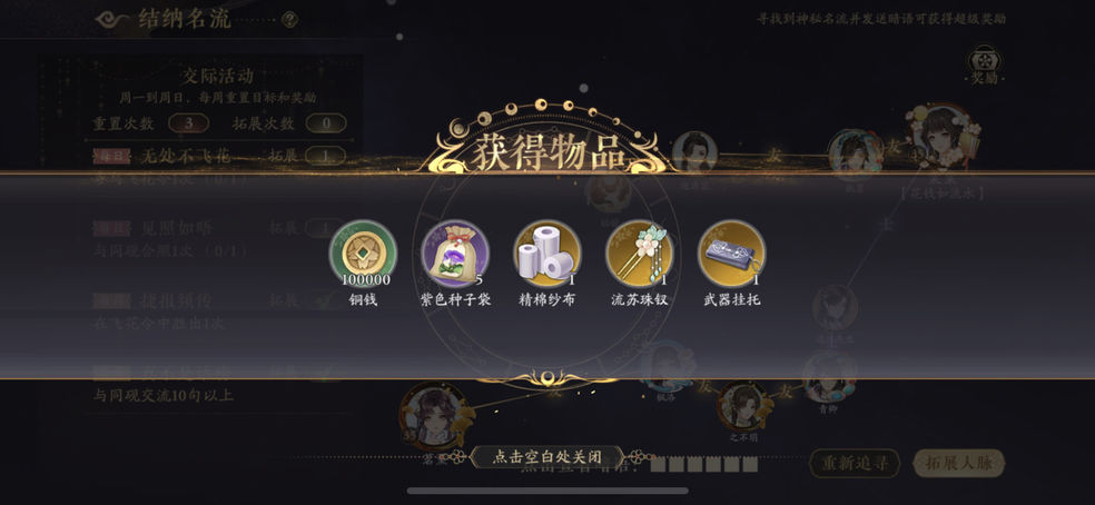 活动连线里会有一个游戏角色,找到了有额外的奖励。如果找到神秘人但是npc没找到记得重置把npc找出来。