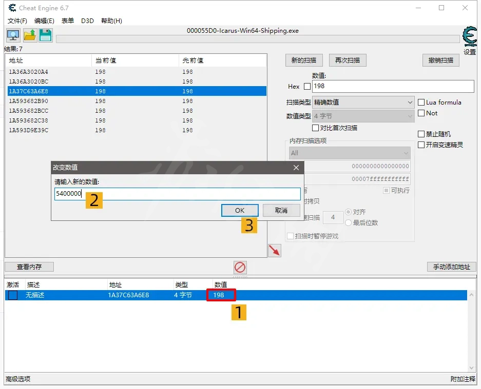 1.9.1 双击下方候选结果中的“数值”,并输入“5400000”,完毕后点击“OK”。