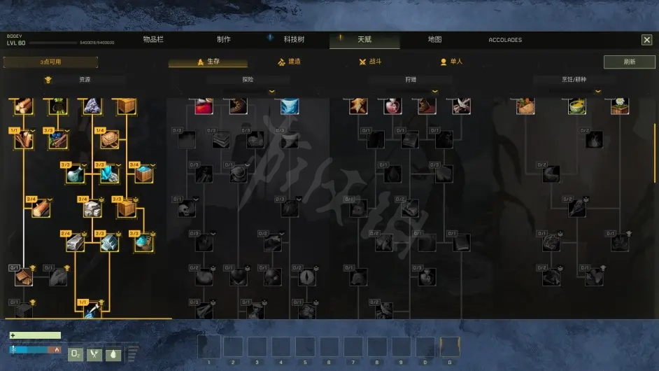 2.0 按下TAB键打开天赋和科技树,开始加点,建议一次性用光当前获取的点数。