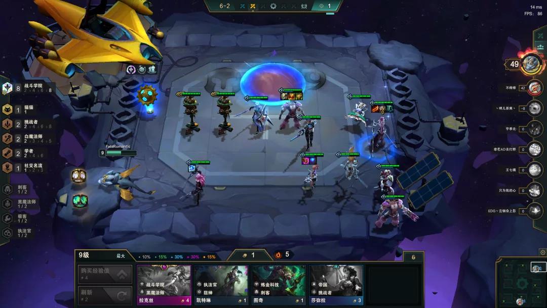 3-2拉6,日女和宝石两张卡留一留,来了就能上场,目前版本节奏偏快,一旦发现有同行可在3-6或3-7跳7人口先一步抢卡,7人口D20-30块左右保底有1张永恩就行,没听牌并且血量健康没必要赌2星,之后卡利息小D开出4学院2挑战2保镖即可存钱上8,永恩没复活甲时尽量不要放第一排吃伤害。