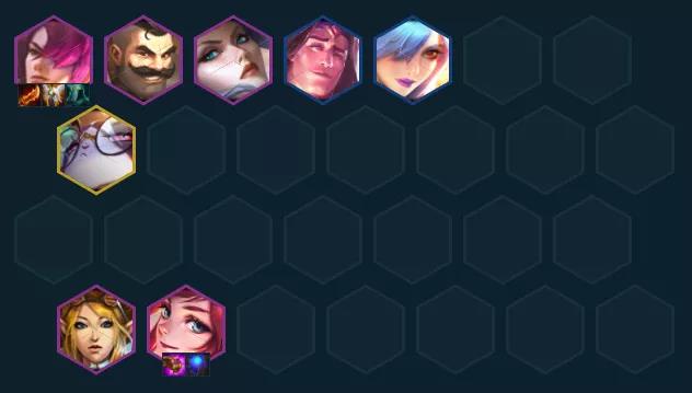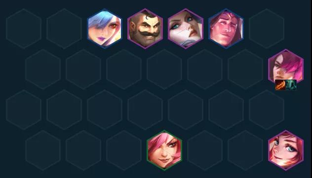 只要质量输不了太多就在4-5或5-1上8,8人口大D2星永恩以及其余四费卡直至阵容成型,有学院转下宝石开6学院,没有猫咪先用卡特,有同行建议上9,9人口上杰斯开2执法官后期有奇效,卡莎带学院转可以换剑姬。站位方面尽量让布隆跟永恩站一起作保护,永恩站侧翼避免吃太多第一波伤害,拉克丝跟敌方阵型站对角,有机器人的话可以拿曙光或风女放角落挡勾。