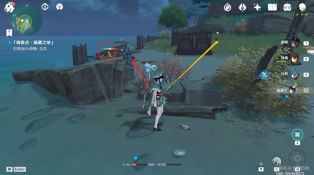 2、利用「烟花机关」吸引周围幻犬后直接飞向小动物进行拯救即可