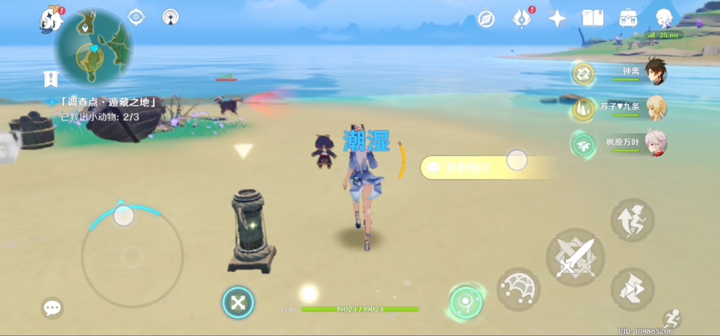 首先过来房子这边开烟花,然后绕着海滩走,开启下一个烟花,最后跑回我们房子另一边的烟雾开启等待,看到狗子渐行渐远,不要犹豫,直接上去抓动物就好。