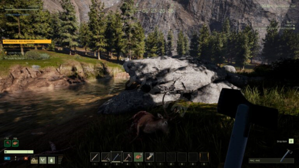 第二个生物样本比较难找,因为它不太显眼。来到O-8中的河湖交汇处,沿着河流的西岸向北走,绕过一块岩石后能够发现一具鹿的尸体,这就是要找的第二个生物样本。