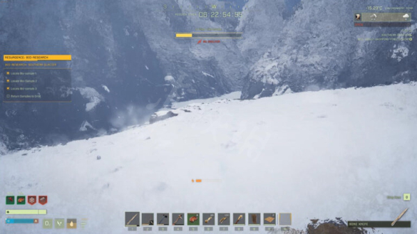 在指定搜索区域内找到生物样本并按【F键】与之互动即可,前两个样本很好拿,最后一个样本在北极,路上可能会遇到北极熊,所以不太容易。