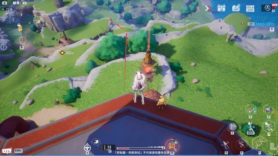 传送到避难所,我们按照如图所示的箭头方向,爬到北边山脉中段即可看到该风景点。