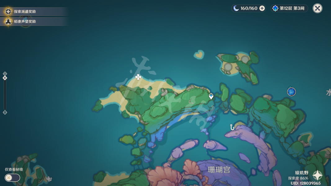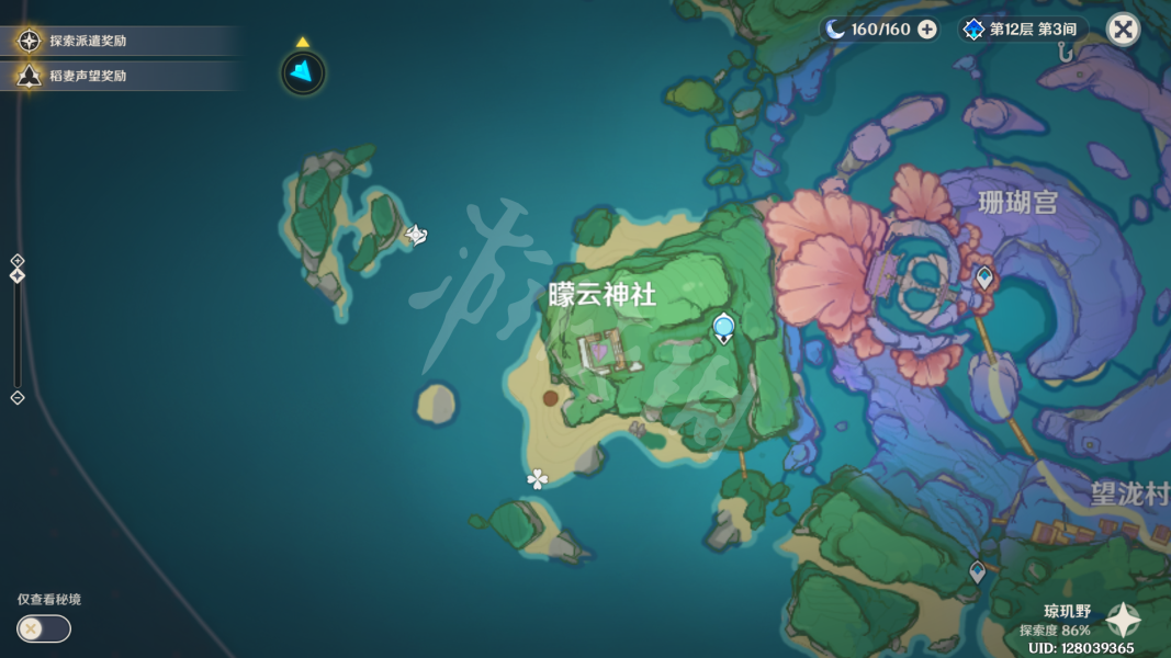 珊瑚宫上方锚点处的左边。