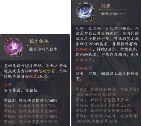 1、夏婉莲的怒气技能让她成为一张眩晕对策卡,0突即有50%概率无条件眩晕,如果能突5,则眩晕概率变为100%,如果和贺之洲的破盾眩晕配合得当