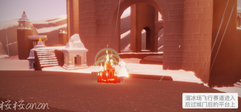 -滑冰场飞行赛道进入后过城门后的平台上