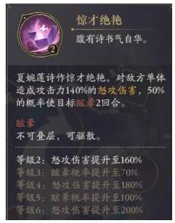 怒气技能让她成为一张眩晕对策卡,0突即有50%概率无条件眩晕,如果能突5,则眩晕概率变为100%,如果和贺之洲的破盾眩晕配合得当,再加上文司宥这类概率眩晕,能够将对面晕成一片。此时如果输出携带赤枭四艺,对被控单位有25%增伤,想必是可以收割一波的。