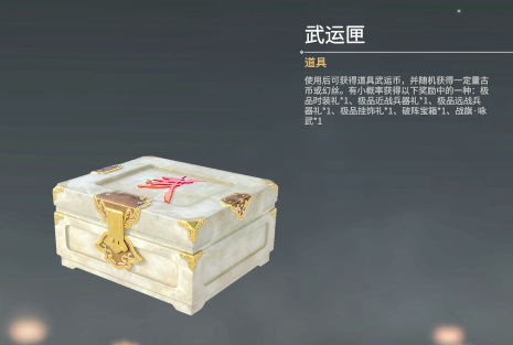 武运匣中可以获得大量精美奖励,比如极品近战礼(兵器皮肤-暮影、兵器皮肤-阴阳师·伞剑、兵器皮肤-残霄、兵器皮肤-击苍穹中任选一款,且是永久),极品远战兵器礼、极品挂饰礼等。