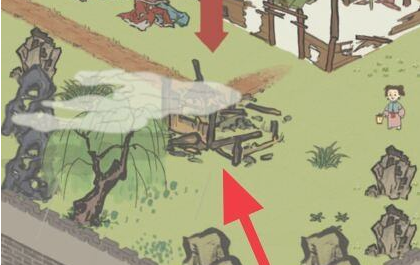 3、根据任务指示箭头位置找到任务地点,点击废墟