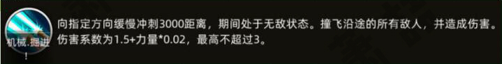 特色技能是机械-掘进:附加无敌状态,撞飞沿途敌人。