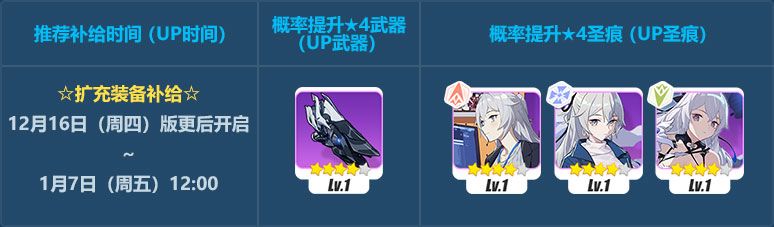 活动期间,抽取扩充装备补给获得的4★装备必为以下中的一件: