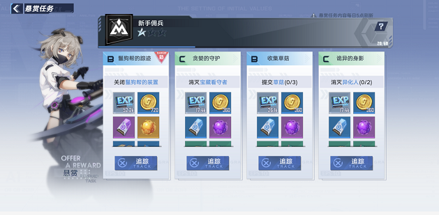 2、每日都会刷新4个不同的悬赏任务,玩家可以通过追踪来找到任务位置;