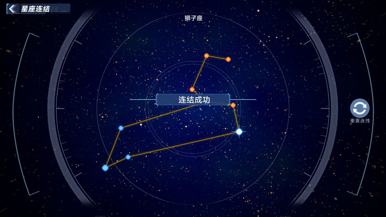 1.这个游戏就是需要把游戏中的点连城一个正确的图案,要是没有参照的话还是比较难连的,所以小编就为玩家们带来攻略的,图中就是狮子座的连线攻略了,按照这个图案将点用线连起来就可以啦。