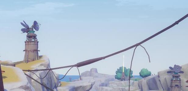 想要进入生态园,就要从地表上的传送装置进入。为了打开传送装置,需要修复临近山坡上的三座泛着红光的基站。