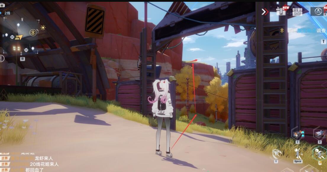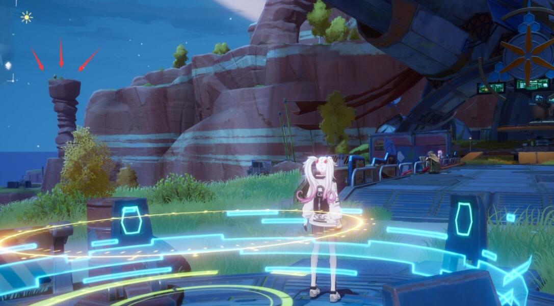 传送到“折跃门-Mega擂台”沿着下图箭头方向,向前走到北边的山丘就能看到“Mega擂台”风景点。