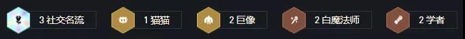 阵容羁绊:3社交名流&1猫猫&2巨像&2白魔法师&2学者