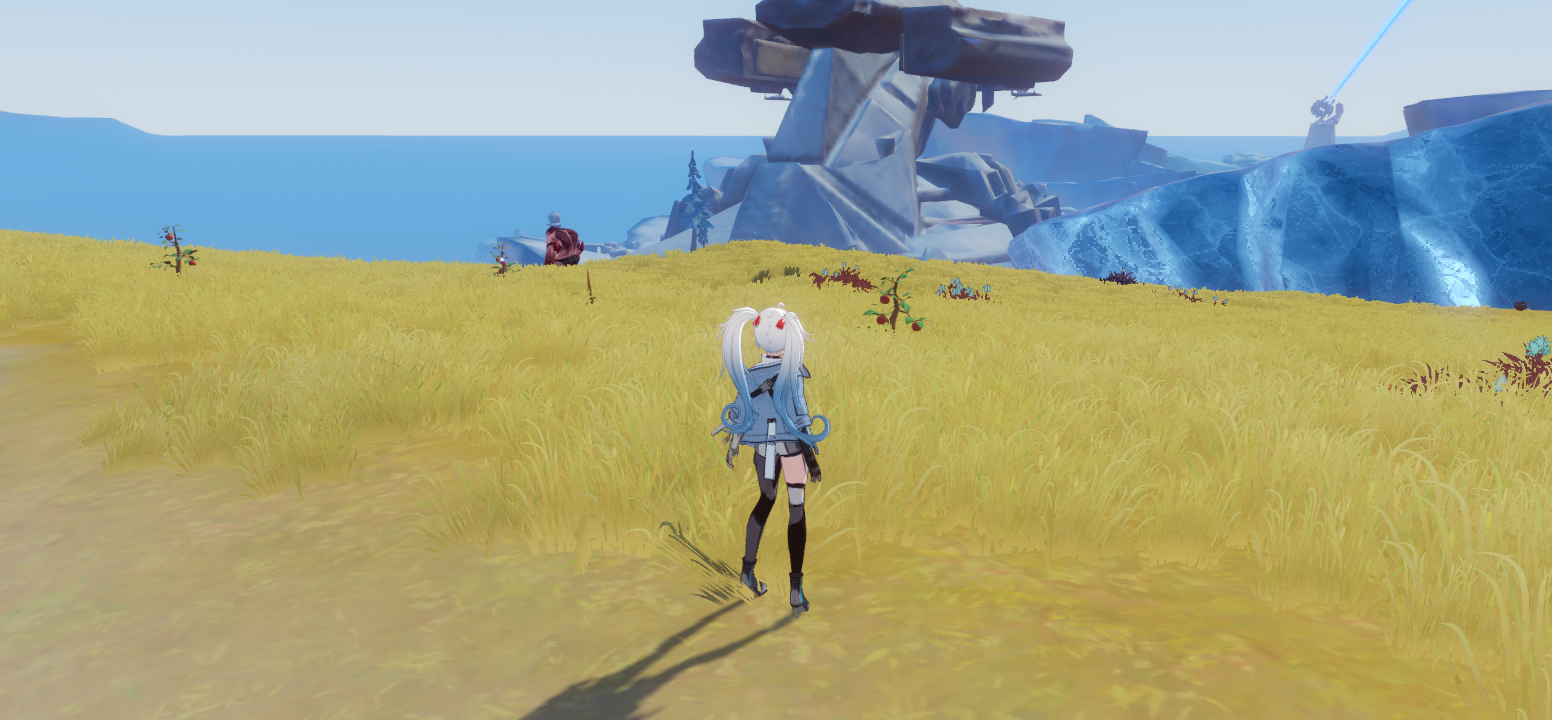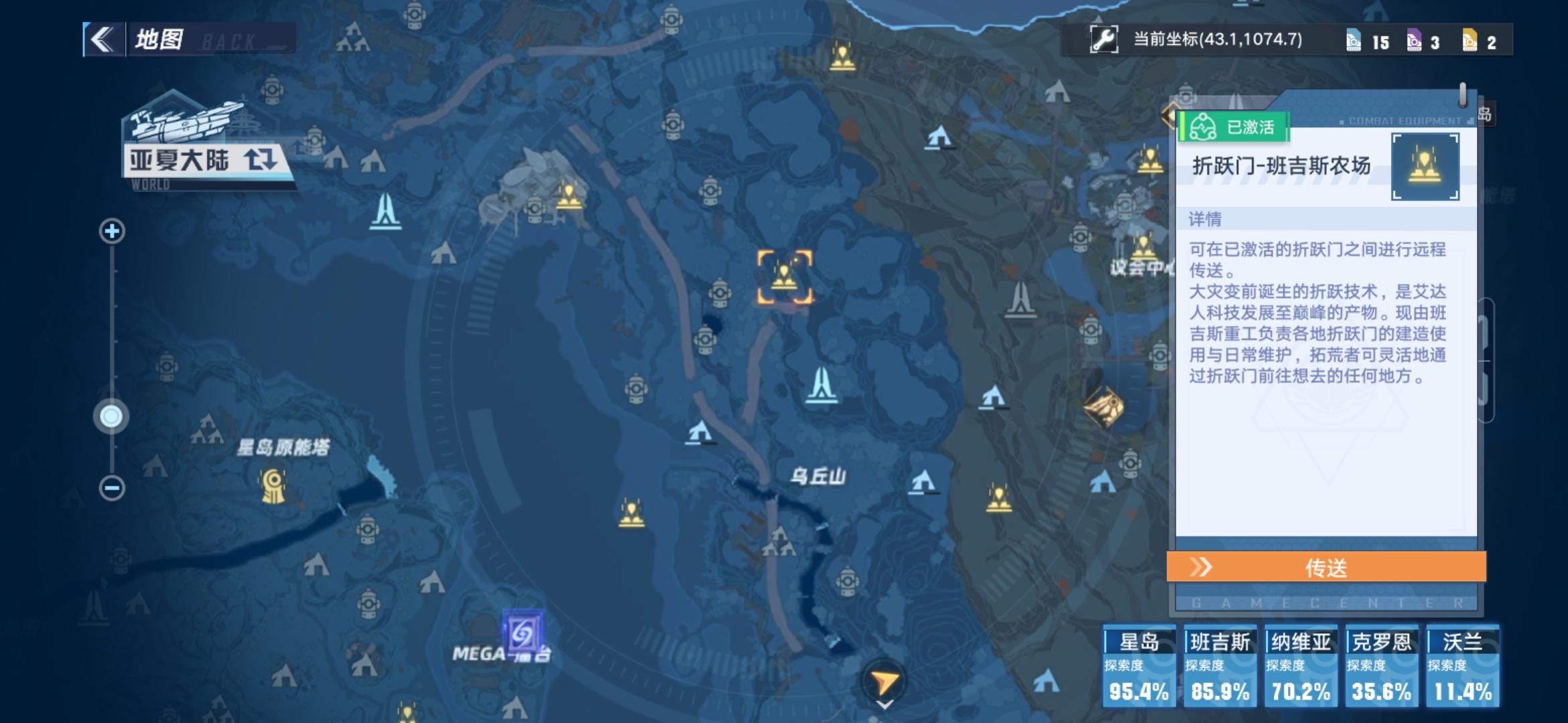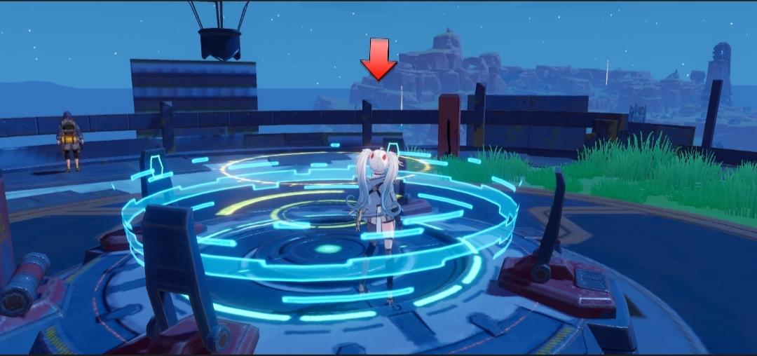 3、启动折跃门-班吉斯农场,使用源器,将原能手炮炮弹打到脚下,生成原能柱,踩在原能柱上面,使用喷气背包飞起来,然后爬到山上,一直爬就上去了。爬上去,就能看见第二个黑兽