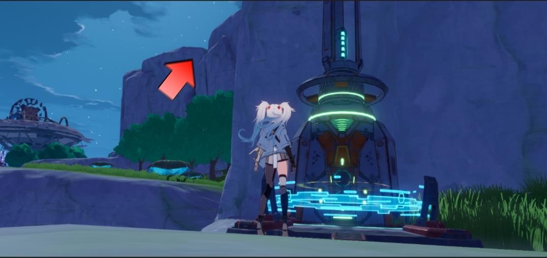 5、启动原能塔-纳维亚,使用喷气背包飞到原能塔后面,可以看到有一座较为平整的山崖,飞过去,爬到山崖上面,爬上去,就可以看到第四个黑兽了