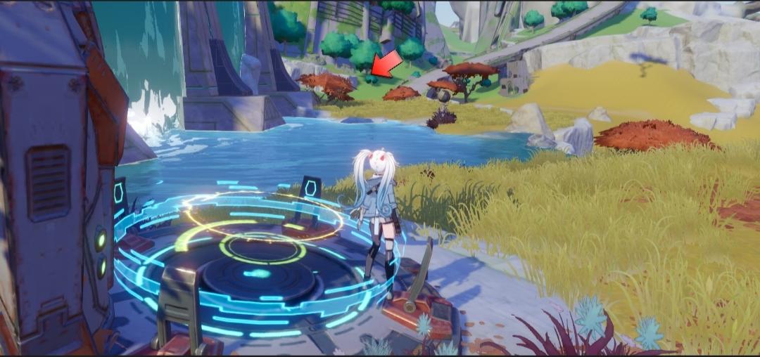 4、启动折跃门-七日之森南部,使用喷气背包,或者喷气滑板飞过河流,跑到枫叶树那边,到了枫树这里,就能看到第三个黑兽