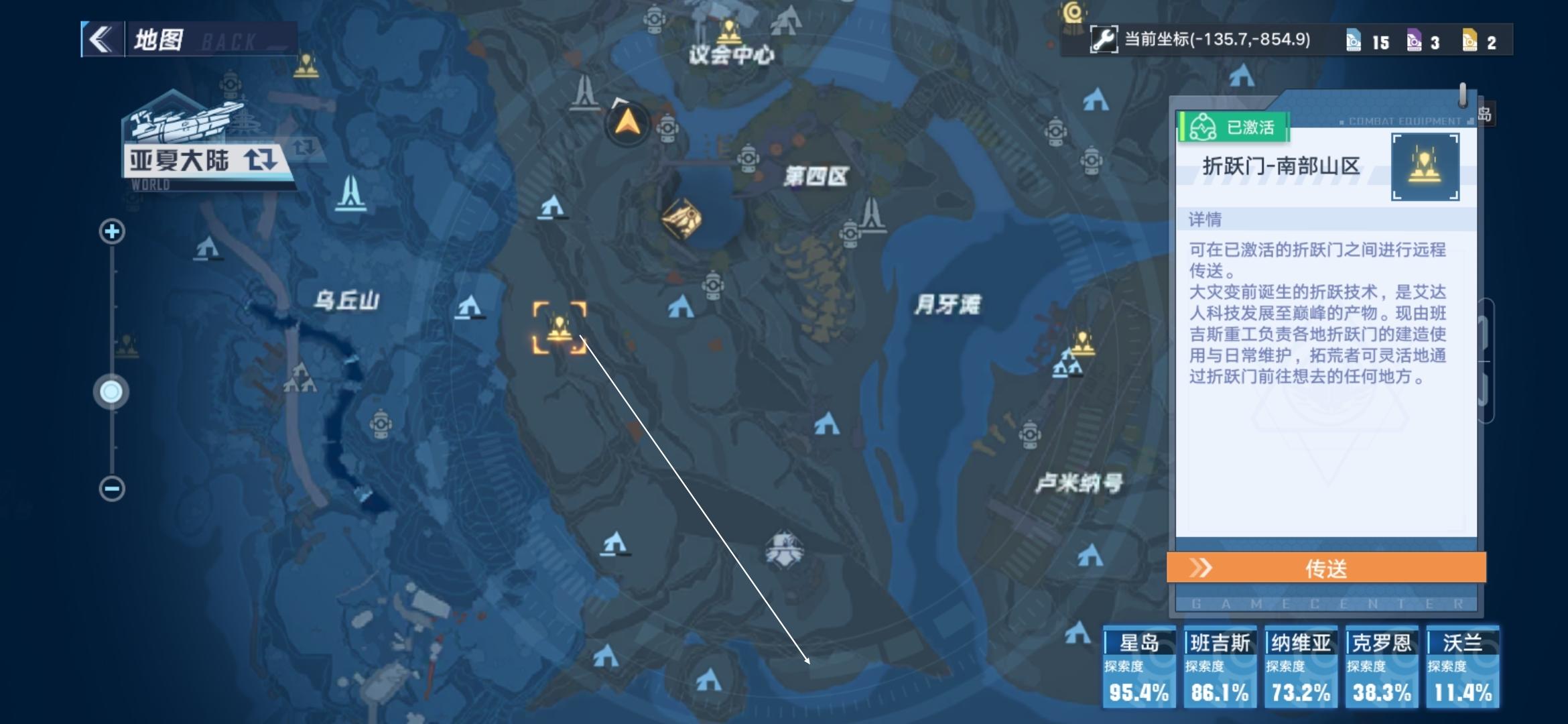 6、启动折跃门-南部山区,一直跑到我画线的这个位置,这边有个沙滩,到了沙滩这边,就可以看到第五个黑兽