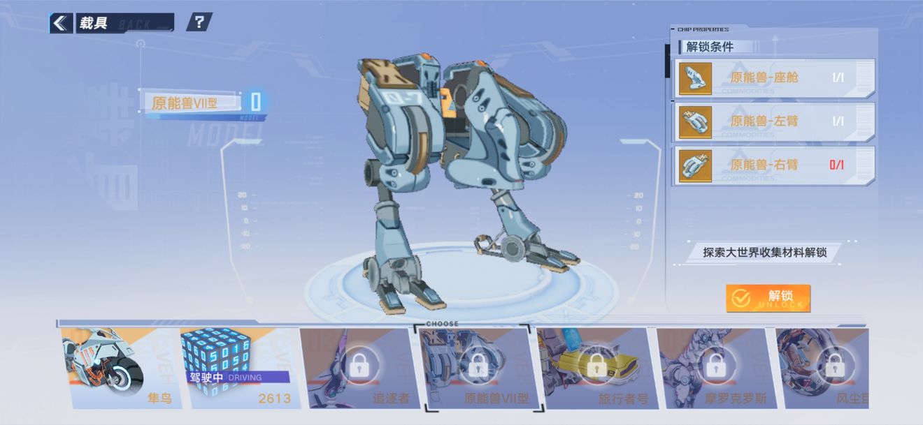 同样的,集齐原能兽的三个零件后,选中原能兽Ⅶ型解锁,即可获得原能兽。