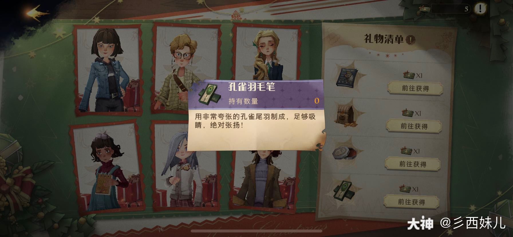 1.前往对角巷赠送6位伙伴NPC礼物,一共有8种不同礼物。