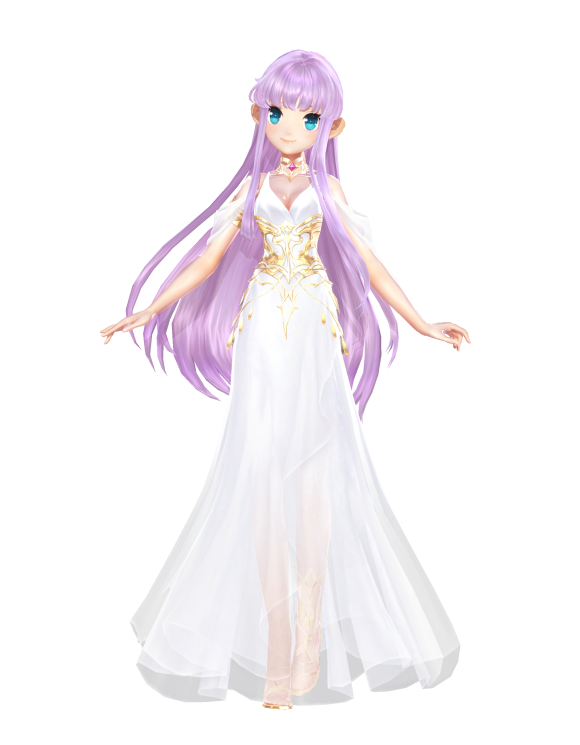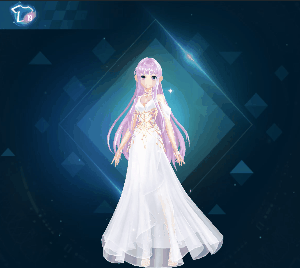 银紫色及腰长发,白色连衣纱裙神金雕饰在密细白纱裙性感迷人,腰间的金色纹饰象征着雅典娜女神至高无上的地位。