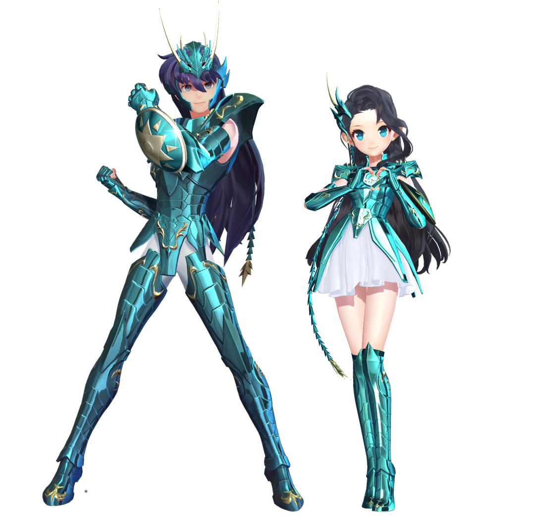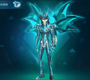青色的天龙座神圣衣,有着凌驾一切的超高防御力,据说是龙的化身;深青色铠甲搭配白色的小短裙,坚韧之中彰显活泼。