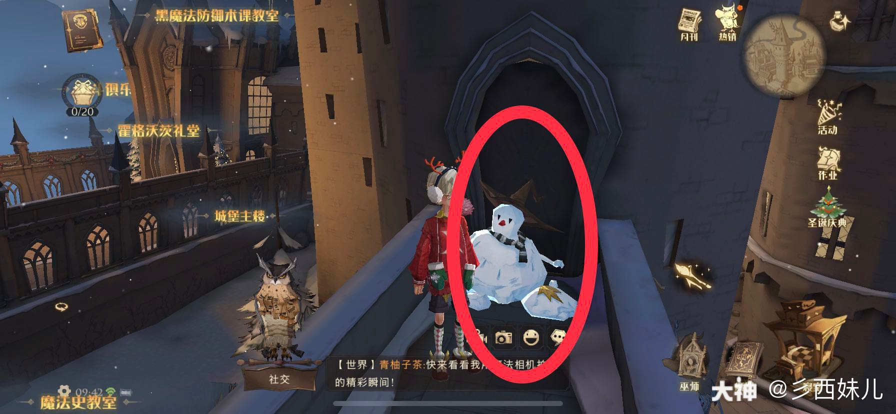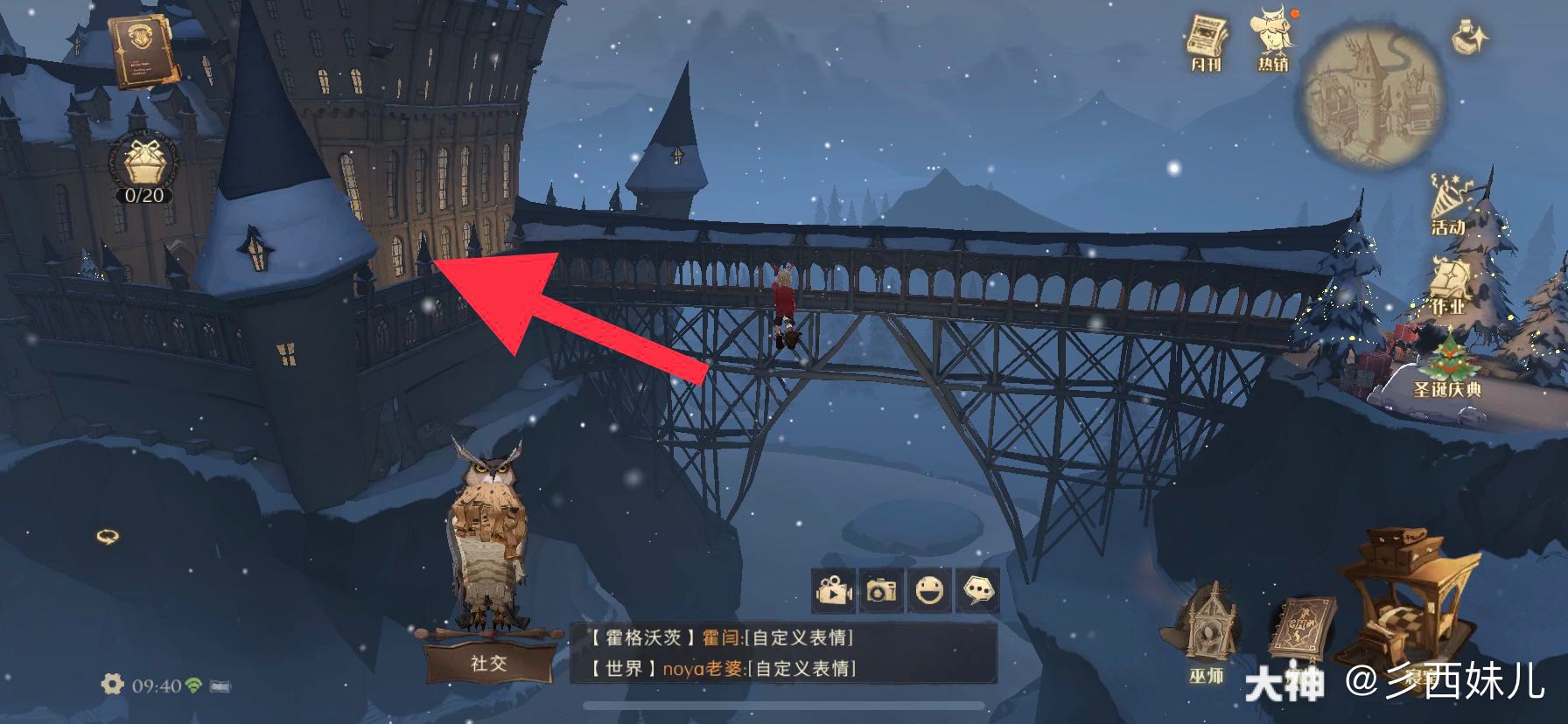 1.圣诞树彩蛋位于草药课教室旁的庭院内。首先来到城堡上空,向草药课教室方向飞去,然后飞至庭院内,俯瞰可以看到庭院中间有一颗圣诞树,降落后在树旁边有一堆礼物盒,点击后即可获得一个【非凡卡包】+200雪花,有可能开出金卡哦~