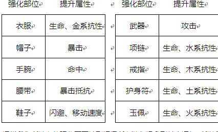 3.强化装备会提升该部位相对应的属性,提升的属性如下: