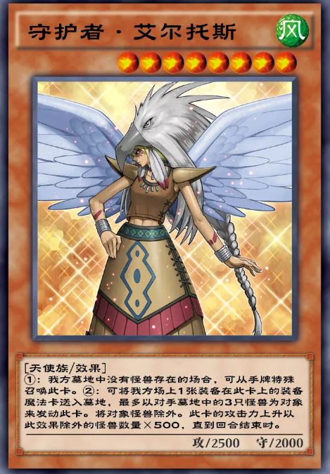 我方墓地没有怪兽存在的场合,拥有2500攻击力的「守护者·艾尔托斯」便可特殊召唤轻松登场。