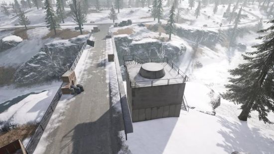虽然没有货车隐蔽性这么好,但哨亭地势高、视野广,想要绕开桥过冰面的敌人都不能躲过这里的侦查。
