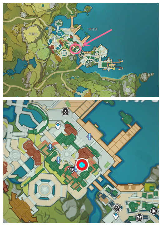 1.下图所示,在璃月港一栋建筑前的街道上面