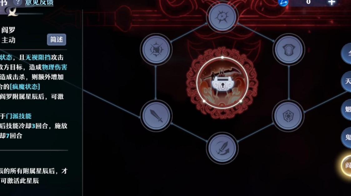 1.先说两个被动,百鬼减防估计是没人点的,肯定都会点灵兽亲和,主动我觉得鬼阵是不适合的,因为鬼阵是要疯魔状态的,如果pvp起手丢了伏龙鼎或者五刀,鬼阵就用不了了,要我选,就选阎罗,阎罗不需要疯魔状态,而且杀了人还给你加两回合的疯魔状态。