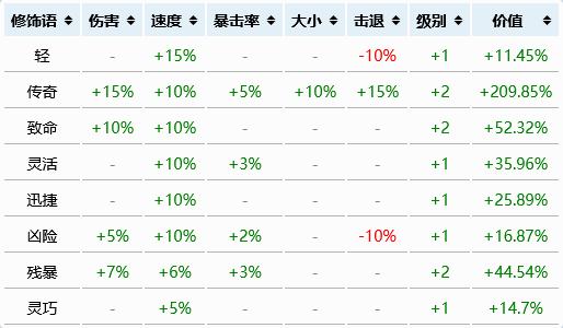 工具上的任何修改速度的前缀(最好的是:轻,有 15% 提升。请注意对于一些工具,还有其他前缀同样也能起作用。)。