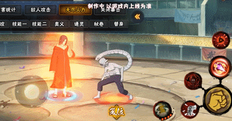 秽土鼬普攻共7A,主要使用体术及忍术发起进攻,期间还会发动须佐骨架和凤仙花爪红重创目标。