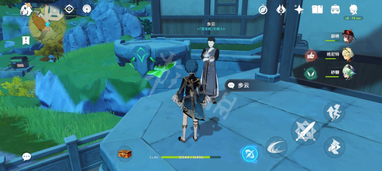 首先我们来到图中的位置,和npc步云对话。