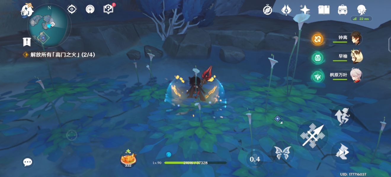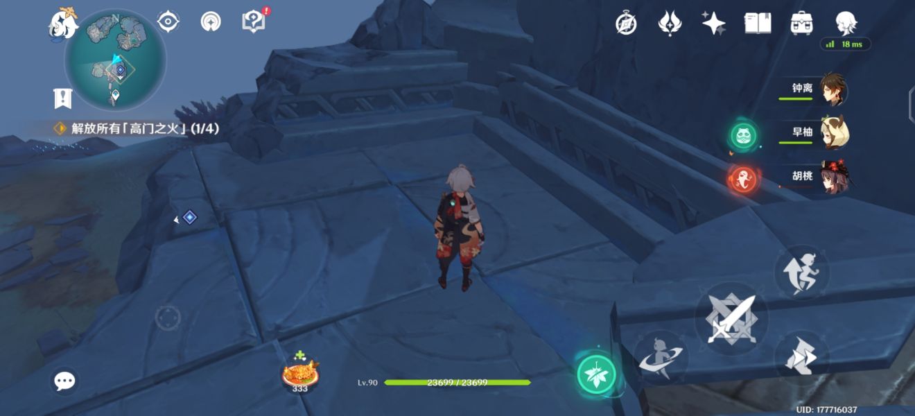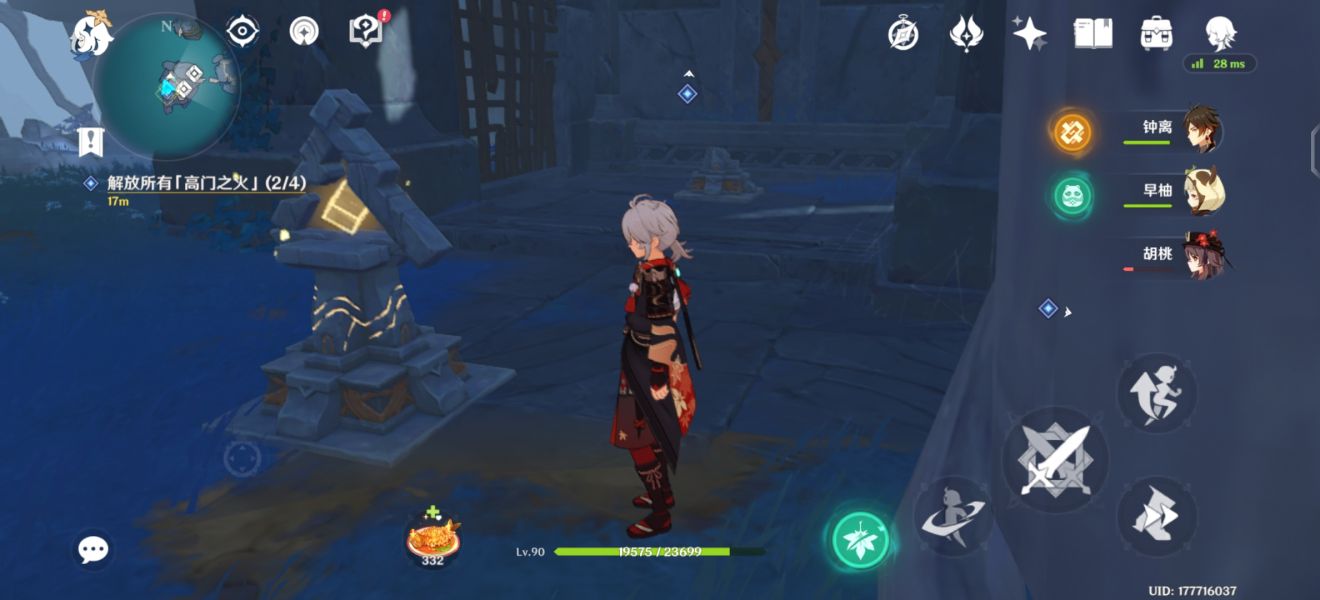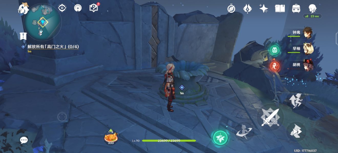 到了后和NPC大门对话开启任务解放四个火的任务。一路向里到达四个雕像平台位置,雕像下面各有一个树杈,掏出安柏牌打火机点燃树杈。会出三批怪,第一批四个小岩系流血狗,第二批两水系深渊法师和一个雷系深渊法师,第三批一个水使徒。