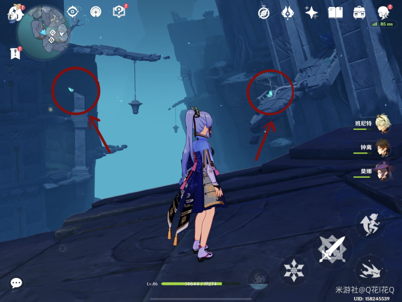 6.要想打开蓝色光幕需要追一下下图的两个仙灵,两个我都是从传送点飞下去追的。