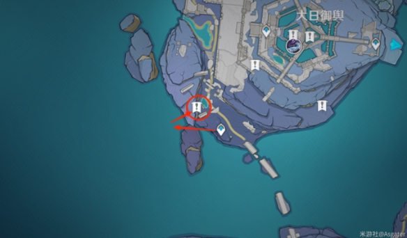 ①.从上图标记大日御舆的锚点处向西南方向;