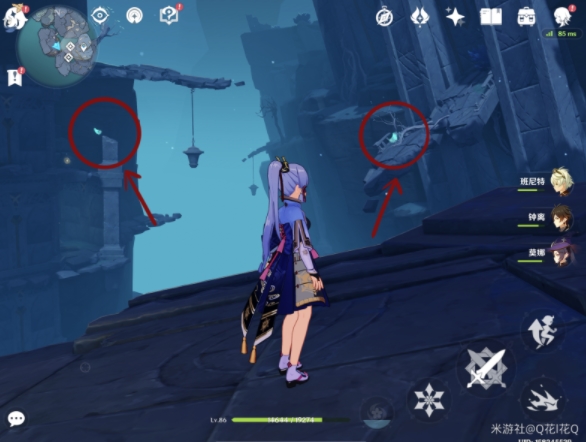 要想打开蓝色光幕需要追一下下图的两个仙灵,两个我都是从传送点飞下去追的。