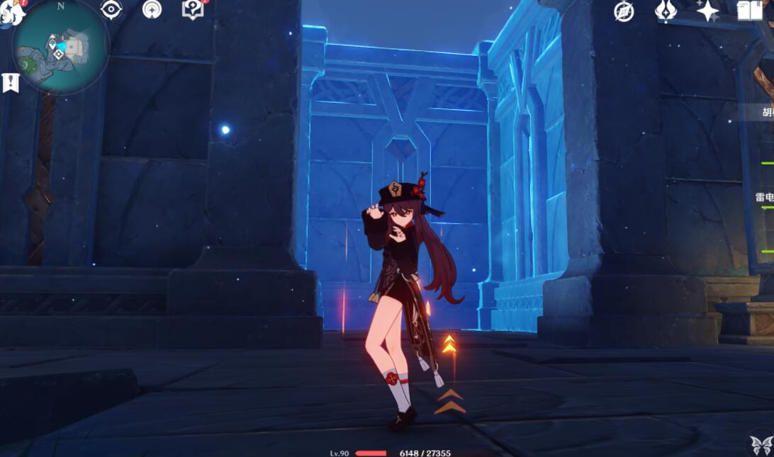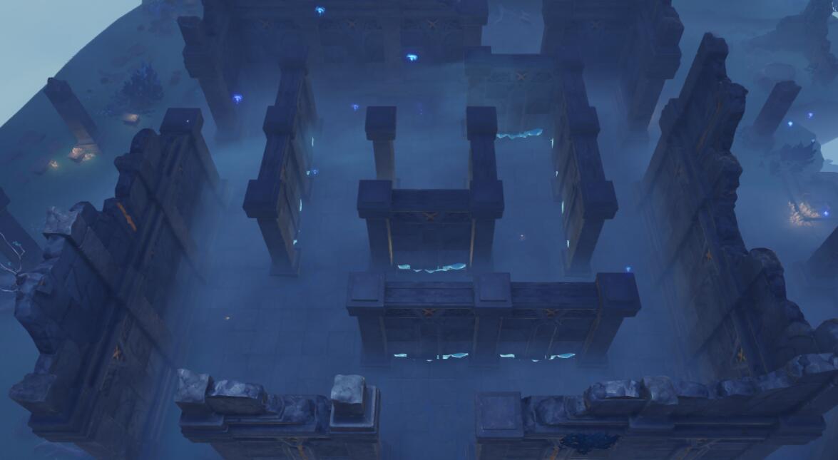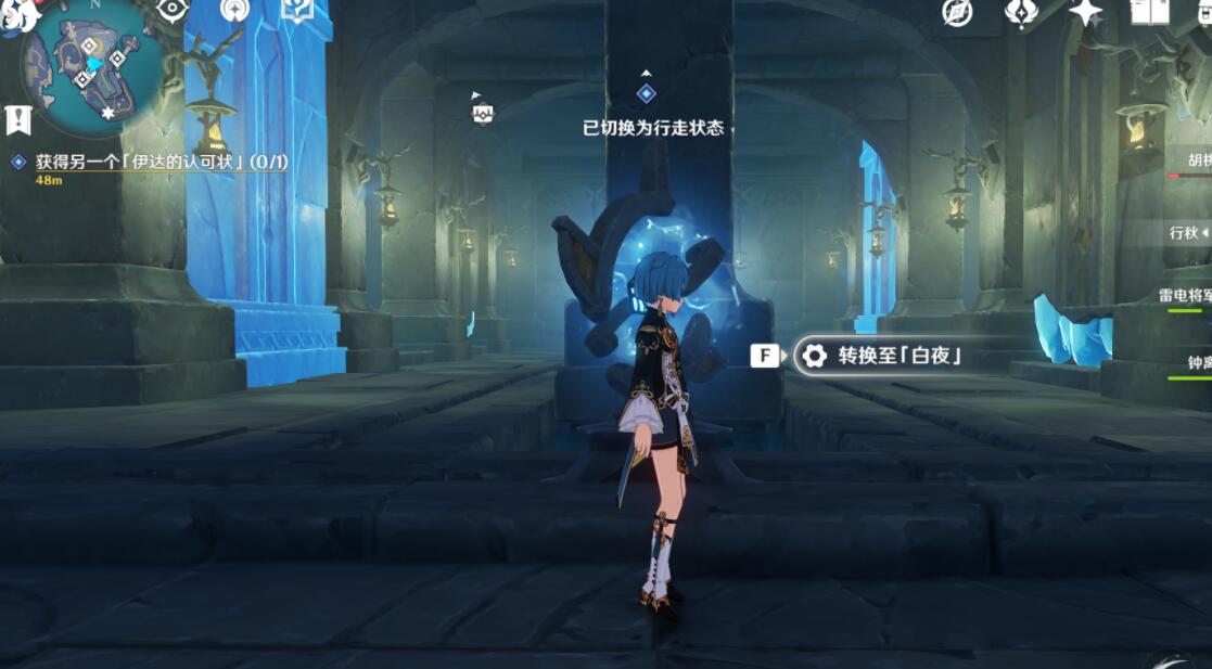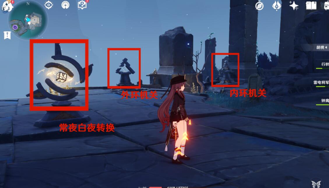 根据提示调整机关让墙体对称,正中间墙体上有铁栅栏门机关(两头都有),两侧为移动墙体机关,要在白夜条件下使用,最后结果为从左到右的顺序,最里面,中间,最靠角色这边这三块要调整为实体墙体。