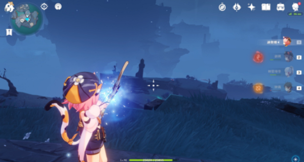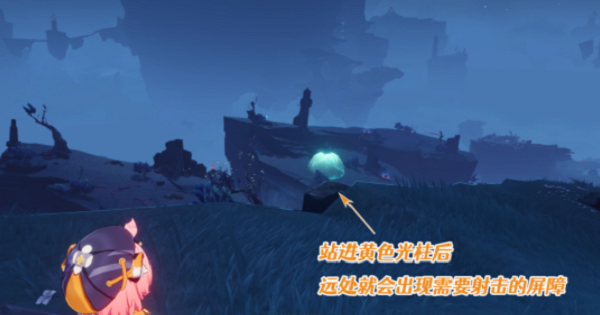3.那我们肯定是要试的,给他露一手看看。这里我们先在队伍里配置一名弓箭角色,接着站到黄色光柱里,就能看到远处的目标了。